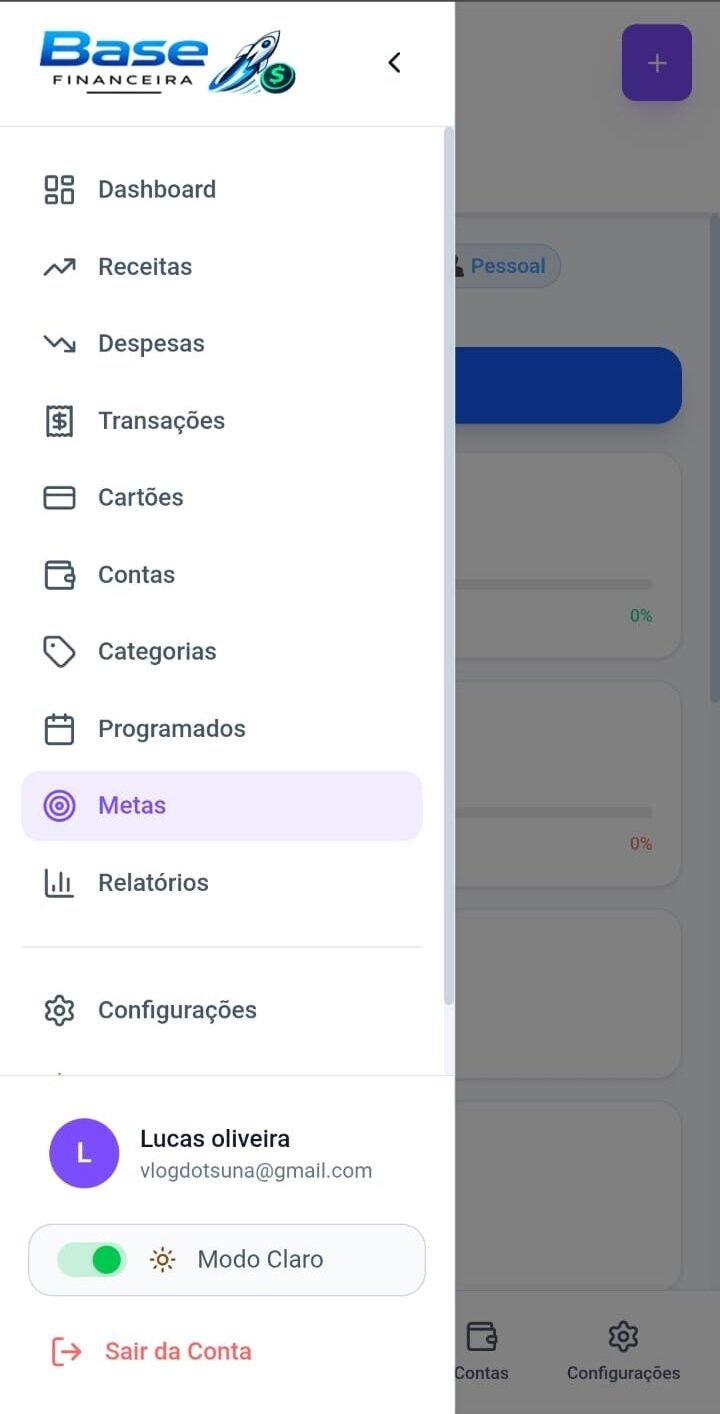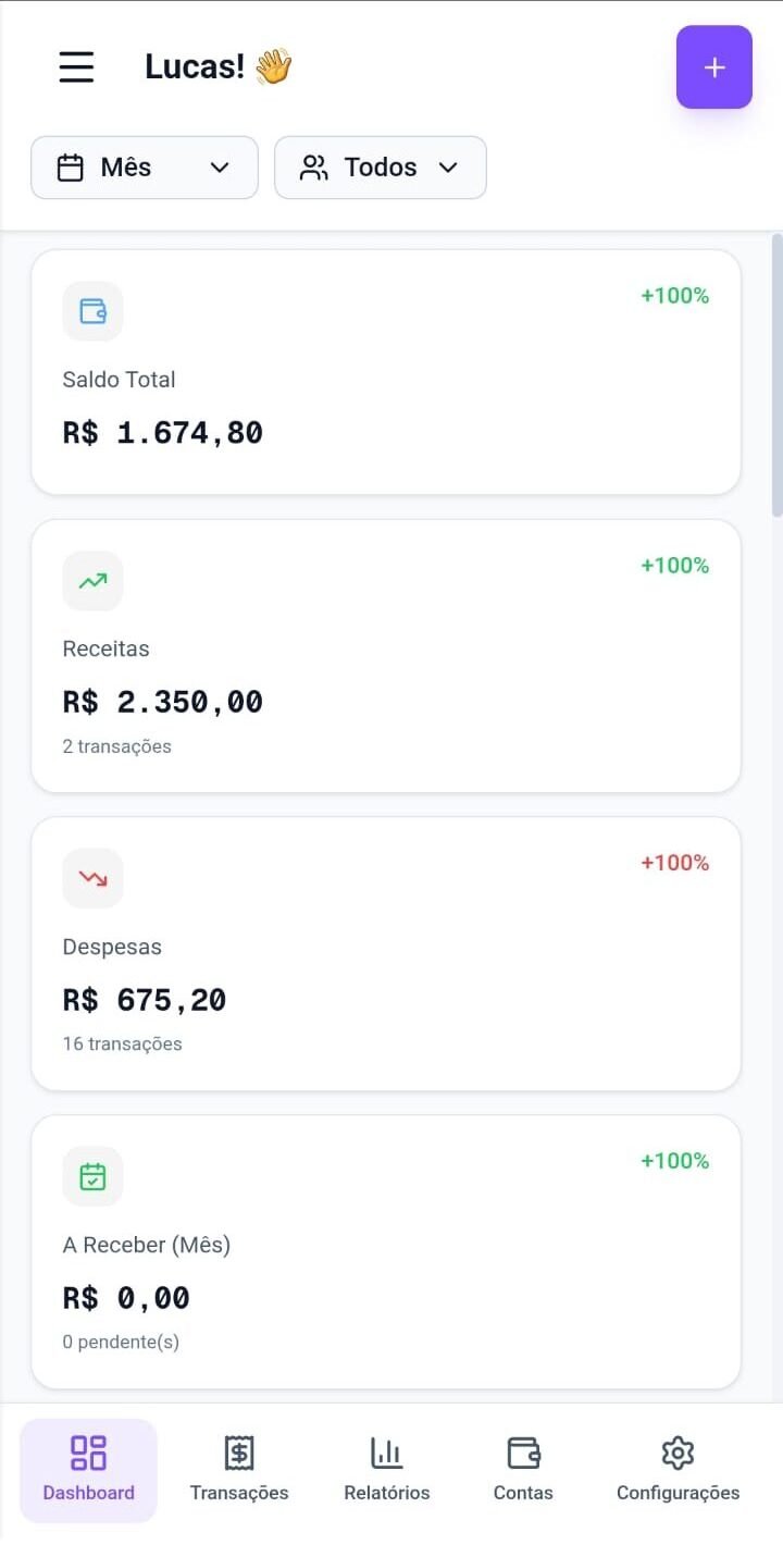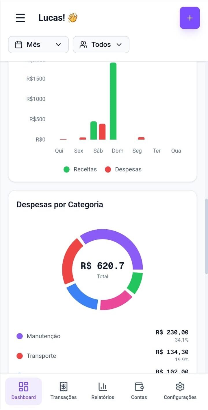 ✔ Dashboard completo com cartões, contas, metas e relatórios